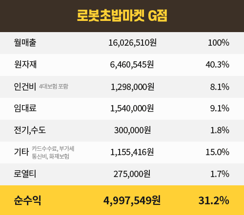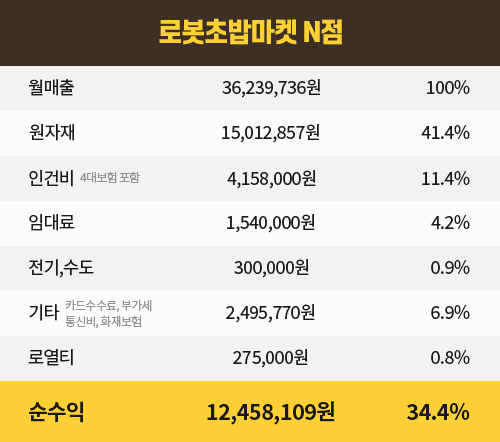 로봇초밥마켓에서 일매출 60만원씩만 팔아도