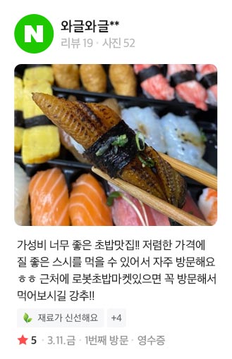 로봇초밥마켓만의 뚜렷한 개성을 살렸습니다.